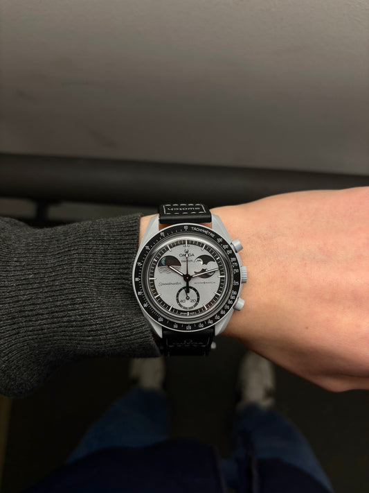 All of the MoonSwatches that we mod are bought in person in store to make sure that they are all genuine, then modified in house to guarantee their authenticity and quality. All products are shipped with their guarantee certificate along with their original box, pamphlet and manuals so that we can guarantee their authenticity.